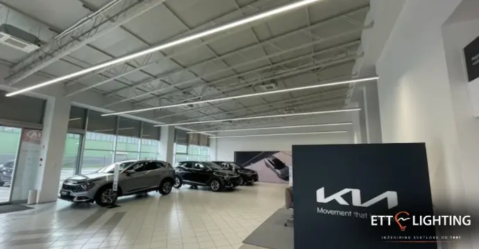 V Razstavnem salonu Avtotehnike Celje smo prostor opremili z visečimi linearnimi LED svetilkami SIGMA, ki združujejo sodoben dizajn, visoko učinkovitost in poudarijo razstavljene avtomobile.