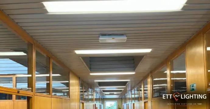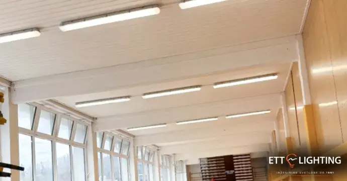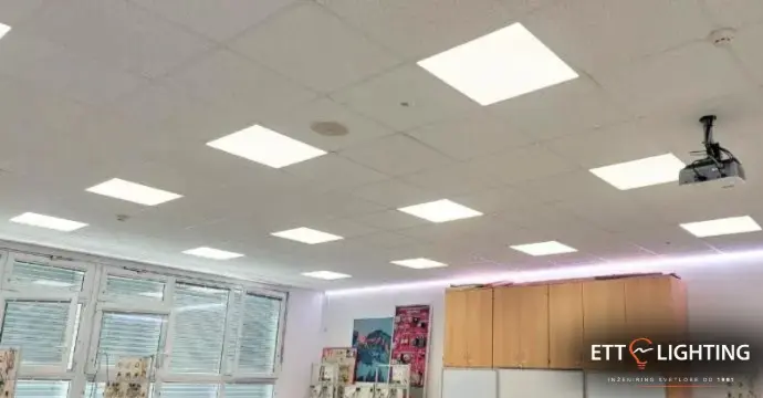 V učilnici za avtomatizacijo na MIC Velenje smo izvedli 1-na-1 menjavo starih 4×18W fluo svetilk z LED pisarniškimi svetilkami ETTELA 32W.