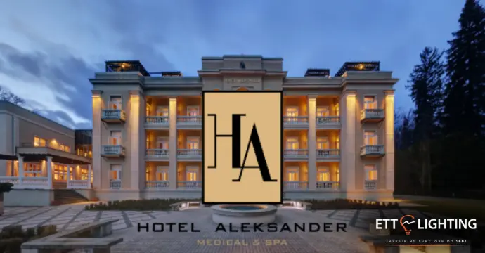 Hotel Aleksander - Osvetlitev hotela ob renoviranju z dizajnersko naprednimi svetilkami z elektronskimi vžigalnimi napravami in samodejno regulacijo svetlobe v DALI protokolu.