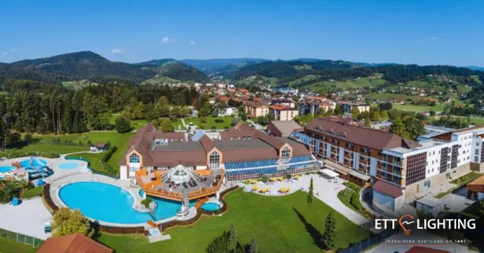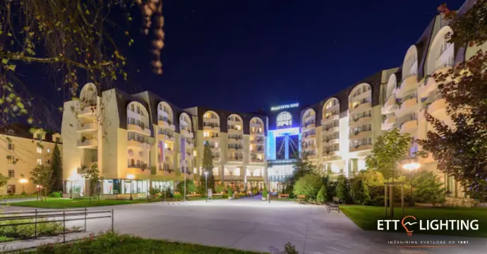 Hotel v Zdravilišču Topolšica - Osvetlitev prizidka hotela in osvetlitev zunanjega bazena.